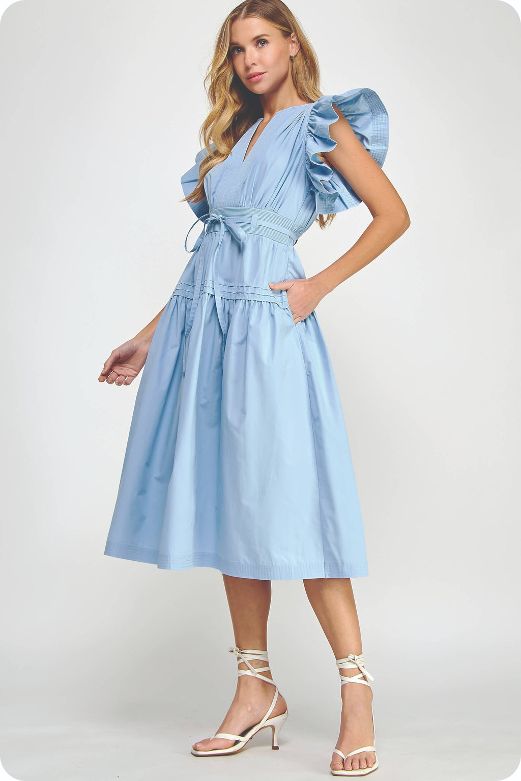 Fancy's Favorite~Olive Flutter Sleeve Poplin Mini Dress